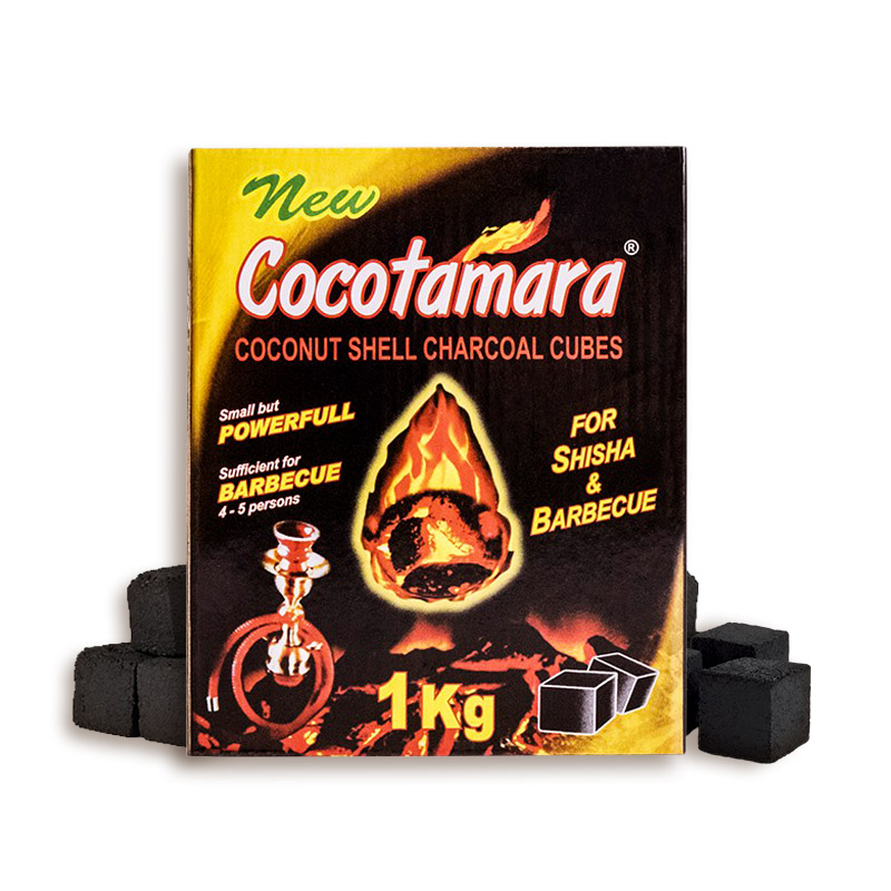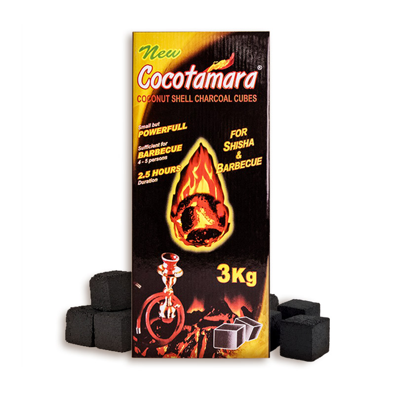 Cubetti di carbone naturale di noce di cocco ideale per narghilè e barbecue.